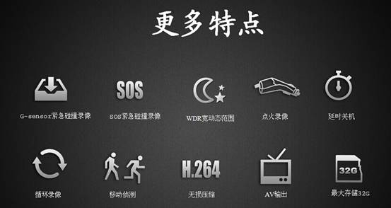 另外,大智G320極清行車記錄儀還擁有必備的諸多實(shí)用功能,如點(diǎn)火自動(dòng)錄像、延遲關(guān)機(jī)、G-Sensor重力感應(yīng)、碰撞/SOS緊急錄像、鎖定重要錄像、移動(dòng)偵測、循環(huán)錄像、H.264無損壓縮等等。